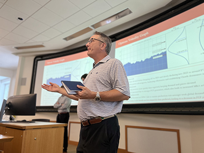 “That rigorous process was extremely important during a choppy 2025,” said Mike Vitek, clinical assistant professor of finance and co-director of the IMA. “Our students navigated a complicated environment that included slowing inflation, a Federal Reserve approaching rate cuts, and tariff uncertainty. That really elevated the importance of macro awareness – particularly around rate sensitivity, tariff exposure, and balance-sheet resilience – and directly shaped portfolio decisions.”